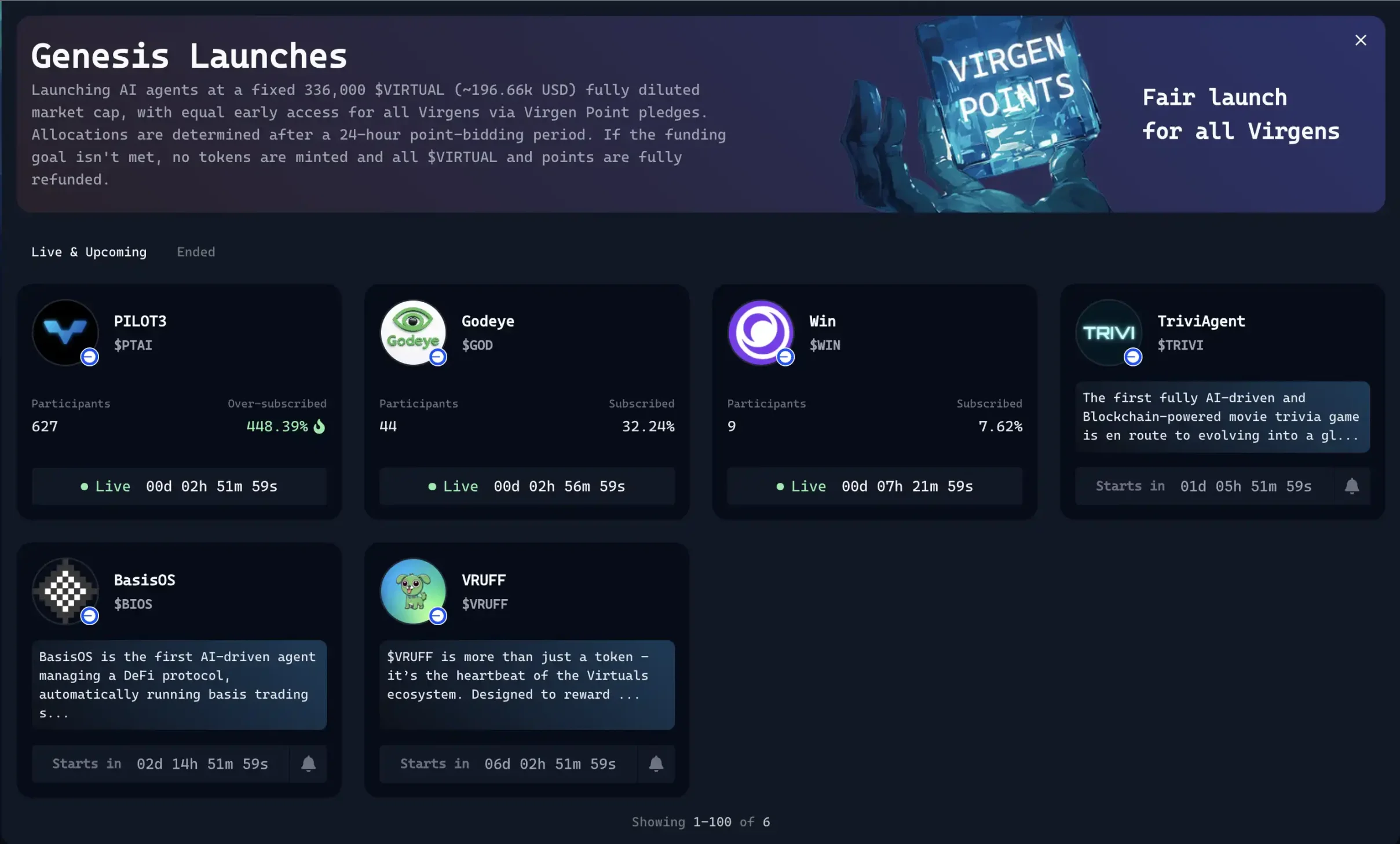 在 4 月份 Virtuals 剛剛推出了 Virgen 積分和 Genesis 發射模式的新模式,用戶可以通過投資 Sentient 和 Prototype 的 Agent、持有 Virtuals、質押 VADER 等方式獲取積分,而積分是參與 Genesis 發射台項目的基礎。Genesis 發射台則是 IDO 模式的項目啓動方式,根據用戶擁有的 Points 來獲取投資額度。而這種發射模式目前並非所有人都可以參與,而是需要經過 Virtuals 官方的審核。