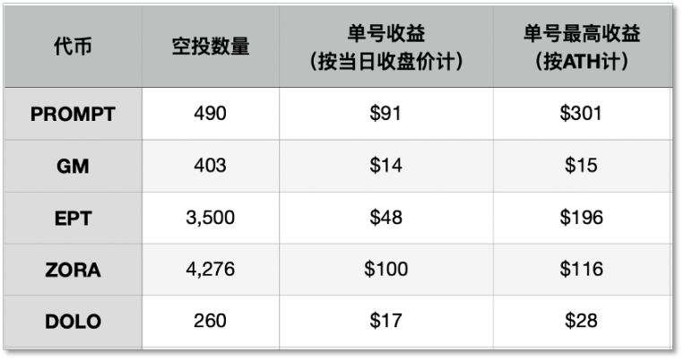 往期 Alpha 空投收益數據