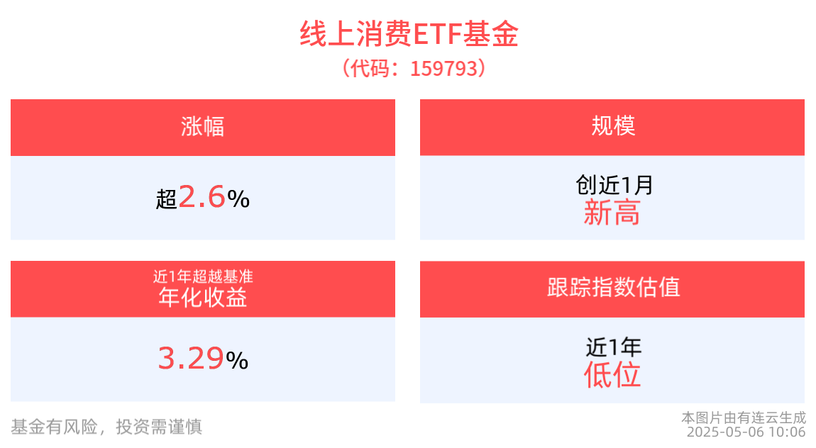綫上消費ETF基金(159793)上漲2.60%,最新價報0.91元。拉長時間看,截至2025年4月30日,綫上消費ETF基金近2周累計上漲2.08%。