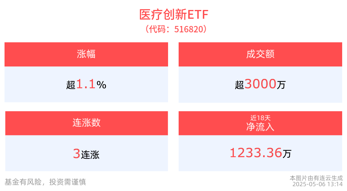 醫療創新ETF(516820)上漲1.19%, 沖擊3連漲。最新價報0.34元。拉長時間看,截至2025年4月30日,醫療創新ETF近2周累計上漲0.60%。