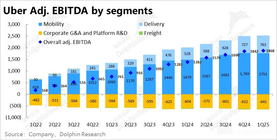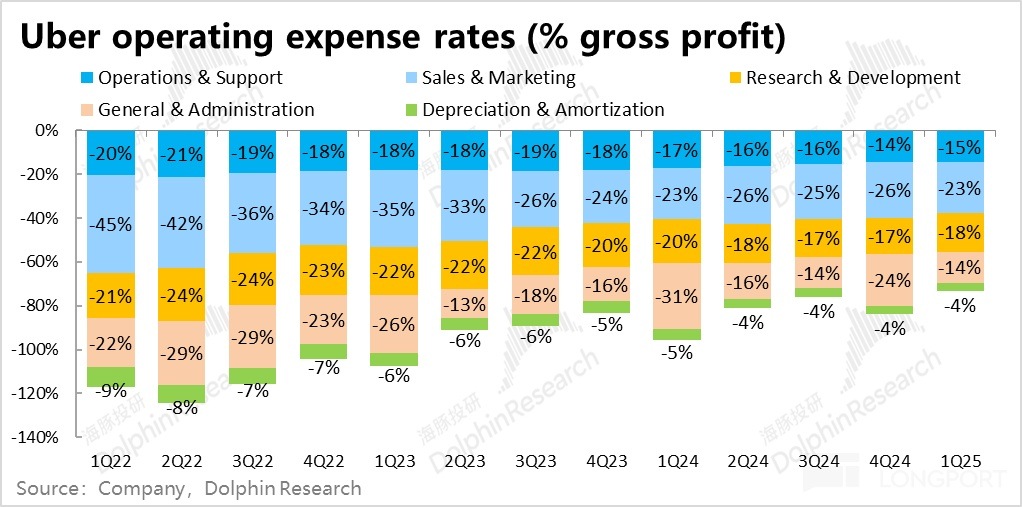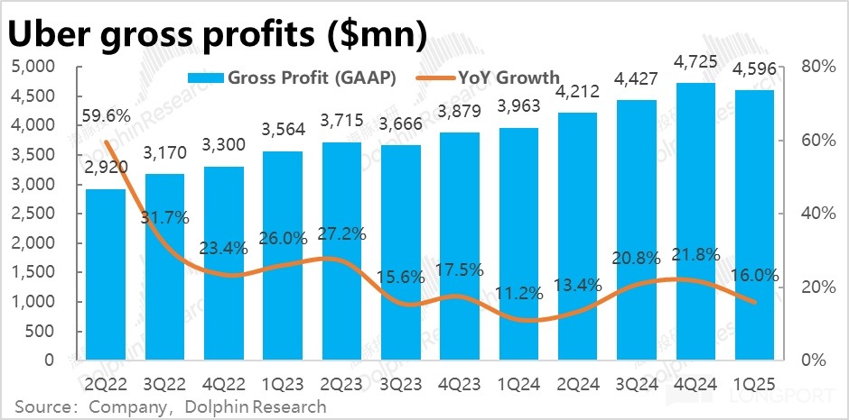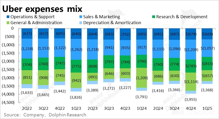 2)盡管增長端表現不佳,憑借著降本提效,Uber 在利潤端的表現依舊稍好於預期,驗證了公司即便在逆風下,依舊能實現利潤率提升的能力。