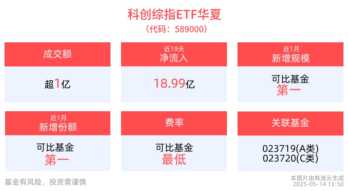 科創綜指ETF華夏(589000),場外聯接(華夏上證科創板綜合ETF聯接A:023719;華夏上證科創板綜合ETF聯接C:023720)。