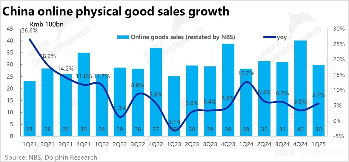 考慮到整體綫上實物零售額的增速是從4Q的3.5%改善到了1Q的5.7%,且先前京東的商城業務也表現不俗,彭博上賣方對淘天本季CMR增速反而環比減速的預期顯然是過於保守或過時了,不具參考價值。更真實的CMR增速預期大約在10%左右。