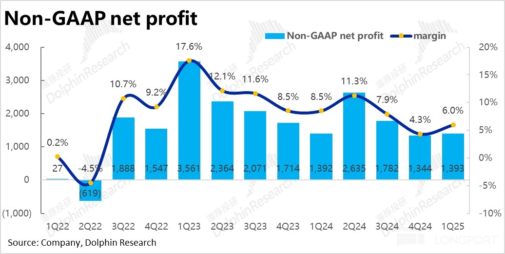 而市場更關注的調整後淨利潤本季為 13.9 億,相比去年業績最低谷時的利潤完全一致。收入如此暴漲的同時,利潤卻毫無釋放的問題還沒扭轉。
