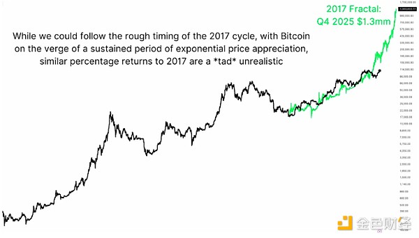 圖 5:重復 2017 年比特幣價格的指數級增長可能是雄心勃勃的。