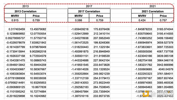 圖 3:使用滾動 MVRV-Z 分數和價格行為的跨周期行為相關性。