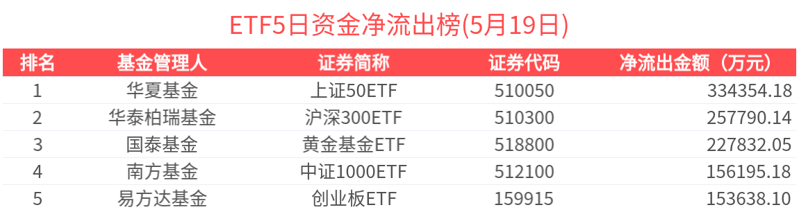 淨流出金額超1億元的有16只,上證50ETF(510050.SH)、創業板ETF(159915.SZ)、黃金ETF(159934.SZ)、港股通互聯網ETF(159792.SZ)、中證500ETF(510500.SH)資金顯著流出,分別淨流出4.86億元、3.47億元、3.44億元、3.37億元、3.09億元(淨贖回份額*單位淨值)。