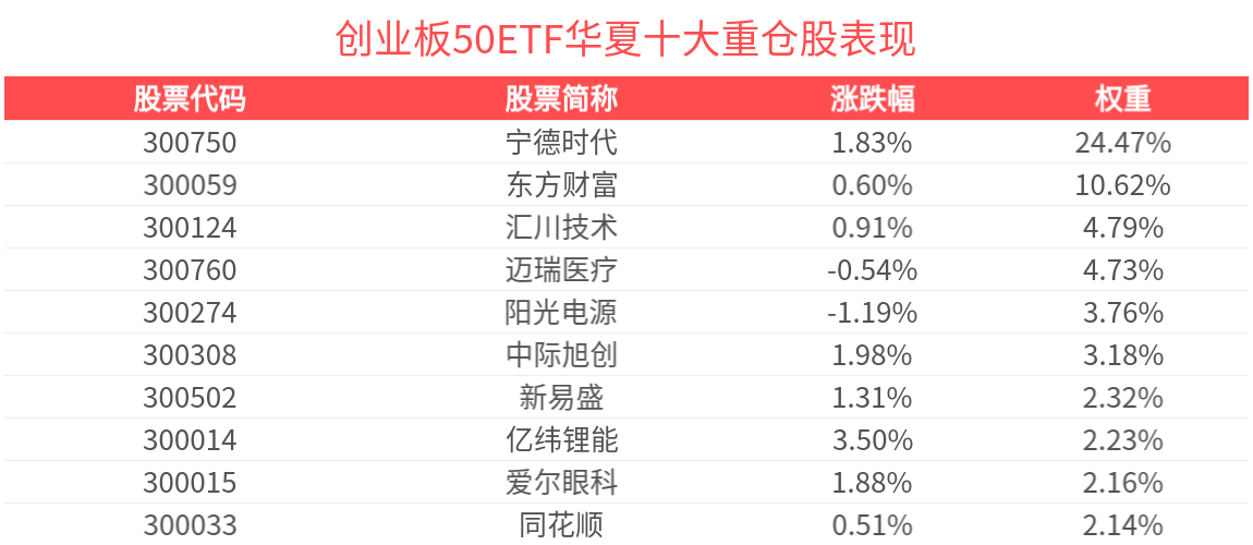 創業板50ETF華夏緊密跟蹤創業板50指數,創業板50指數由創業板市場中日均成交額較大的50只股票組成,反映了創業板市場内知名度高、市值規模大、流動性好的企業的整體表現。