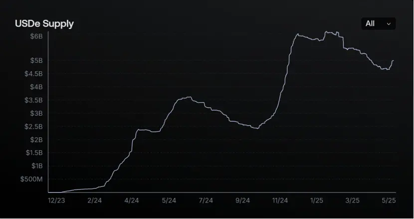 USDe 的供給量變化,來源 https://app.ethena.fi