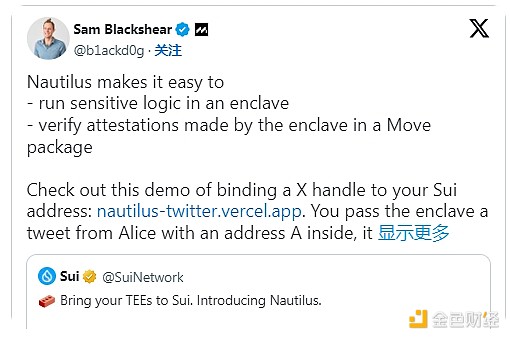 同樣處於測試階段的還有 Nautilus,這是一個使用可信執行環境 (TEE) 將復雜操作卸載到安全的外部機器上,然後在鏈上驗證結果的係統。