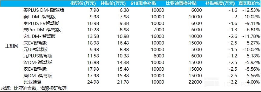 上周末$比亞迪股份(01211.HK) 繼續對旗下車型加大促銷,對智駕版車型也也開始大幅降價,跟海豚君之前的預期一致,部分車型包括國補已經降低至 6 萬元級別,實際降價幅度 5%-10%,又再一次掀起了行業的價格戰,也導致了市場對新能源車企新一波價格戰浪潮開啓的擔憂,比亞迪港股截至今日午間收盤跌幅達 7.7%,直接帶崩新能源汽車板塊。