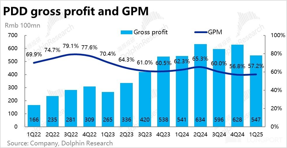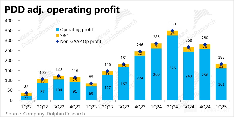 由于关税政策的影响,本季 Temu 的营销费用应当是明显收窄的,因此暴涨的营销费用只能是国内主站非常激进的补贴所导致的。在海外业务受阻后,公司又将投入的重心放回了国内主站上。在主站增长不断放缓、“泯然众人” 时,有靠大量补贴夺回增长的意图。
