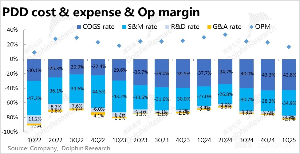 毛利角度,本季拼多多毛利润为 547 亿,同样比市场预期低了整整 50 亿。但类似的,海豚业绩前预测的毛利润又和实际情况基本一致。因此不及预期的主要诱因,可能也是卖方高估了 Temu 本季的总 GMV 规模,同时又低估了半托管模式的比重。此外,由于主站变现率下滑 (因为对商家费用的减免或补贴),支出又在增加,对毛利润也是负面拖累。