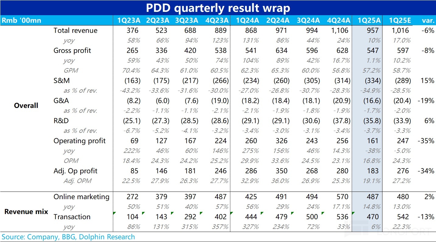 和上季度情况类似,主要反映主站情况的广告收入是在预期之内的,又是不好把握的佣金收入(受 Temu 影响)导致的预期差。