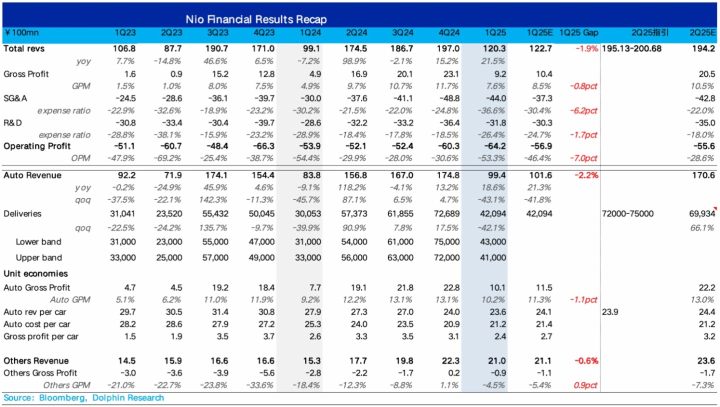 $蔚來汽車(NIO.US) $蔚來-SW(09866.HK) 於北京時間 2025 年 6 月 3 日美股盤前,港股盤後發佈了 2025 年第一季度財報。一季度業績雖然很爛,但二季度指引在邊際改善,來詳細看一下: