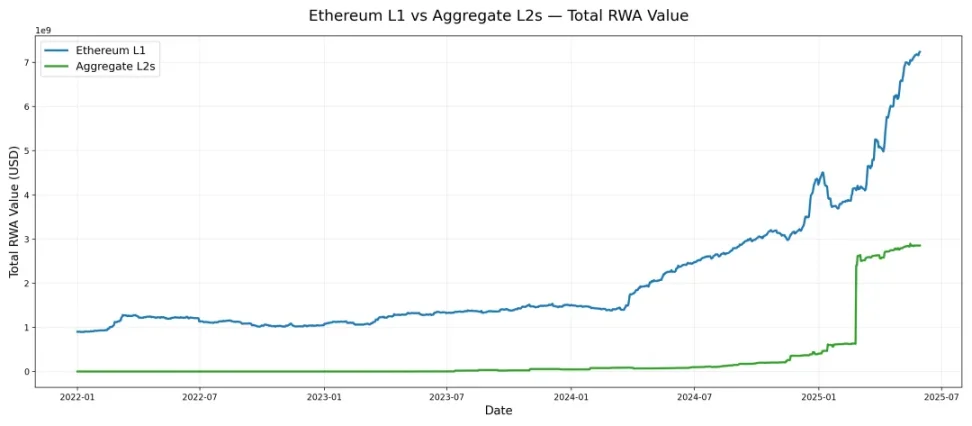 值此市場關注度空前高漲、傳統金融更廣泛採用指日可待之際,深入審視當前 RWA 格局——尤其是以太坊等領先平台的地位——至關重要。基於以太坊的 RWA 已展現出驚人的環比增速,常保持兩位數高位;2025 年增速相較 2024 年個位數月份更顯加快。推動此勢頭的另一關鍵因素是「以太坊化」(Etherealize)作為監管發展的催化劑,以及以太坊基金會將 RWA 列為戰略重點。在此關鍵節點,本文將深入探討以太坊及其 Layer-2 網絡上的 RWA 發展動態。