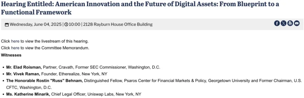 近期,Etherealize 創始人 Vivek Raman 受邀出席國會眾議院金融服務委員會,關於「美國創新與數字資産未來」的聽證會,繼續擴大 Ethrealize 與監管交流的重要作用。