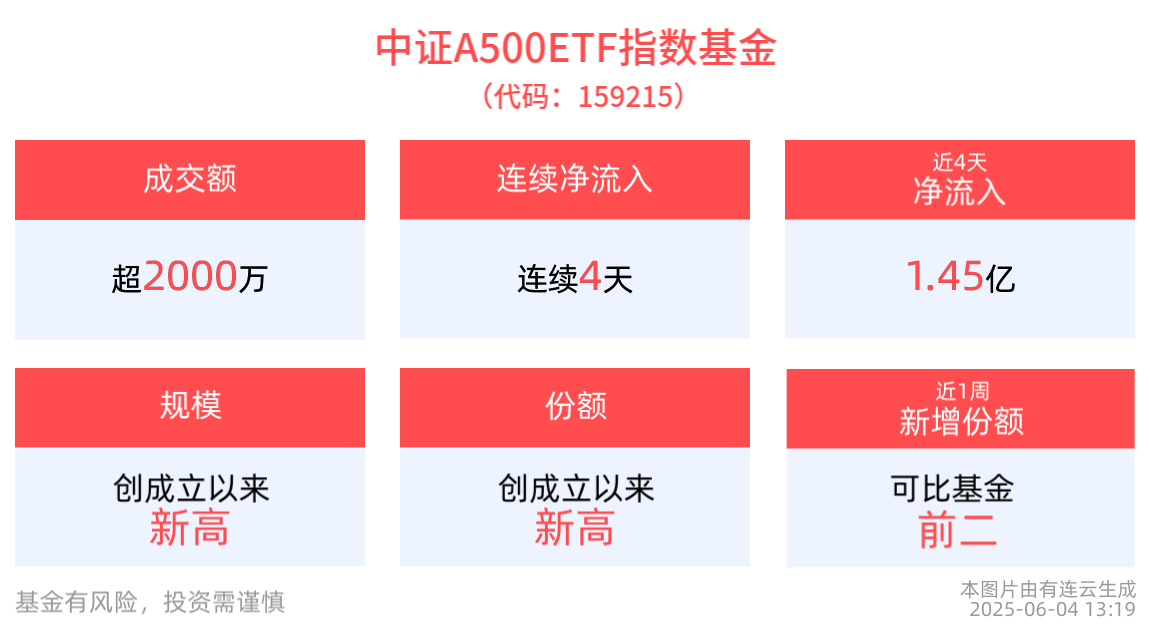 份額方面,中證A500ETF指數基金最新份額達21.92億份,創成立以來新高。