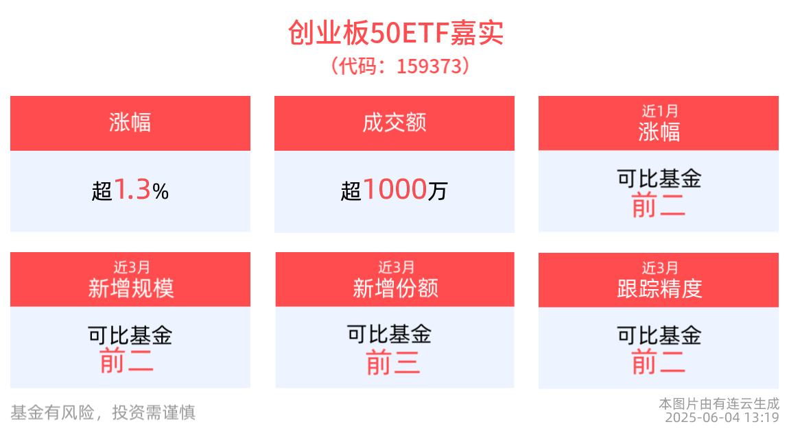 流動性方面,創業板50ETF嘉實盤中換手3.09%,成交1153.28萬元。拉長時間看,截至6月3日,創業板50ETF嘉實近1年日均成交3405.64萬元。