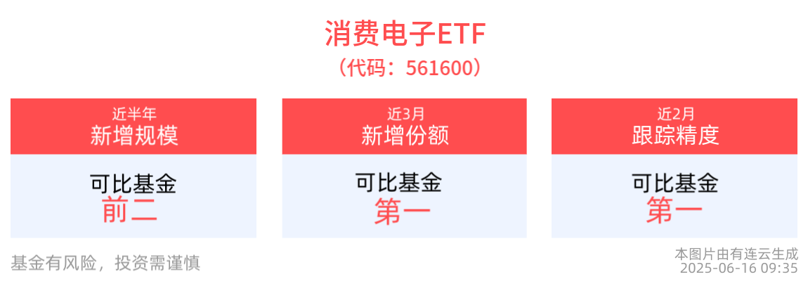 份額方面,消費電子ETF近3月份額增長2600.00萬份,實現顯著增長,新增份額位居可比基金1/5。