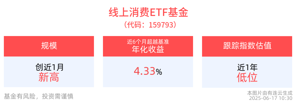 規模方面,綫上消費ETF基金最新規模達3508.94萬元,創近1月新高。