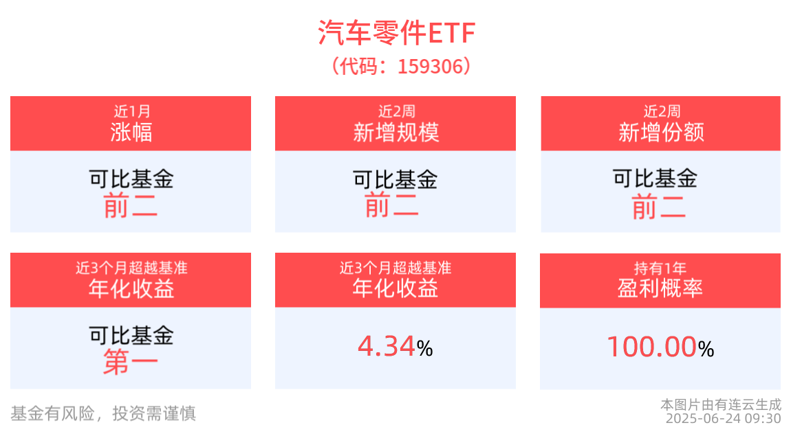份額方面,汽車零件ETF近2周份額增長200.00萬份,實現顯著增長。