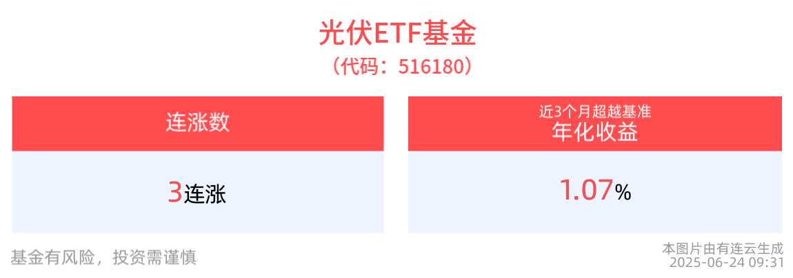 截至2025年6月24日 09:31,中證光伏産業指數(931151)上漲0.32%,成分股陽光電源(300274)上漲1.70%,羅博特科(300757)上漲1.39%,中信博(688408)上漲1.23%,微導納米(688147)上漲1.05%,科士達(002518)上漲1.03%。光伏ETF基金(516180)上漲0.19%, 沖擊3連漲。最新價報0.53元。