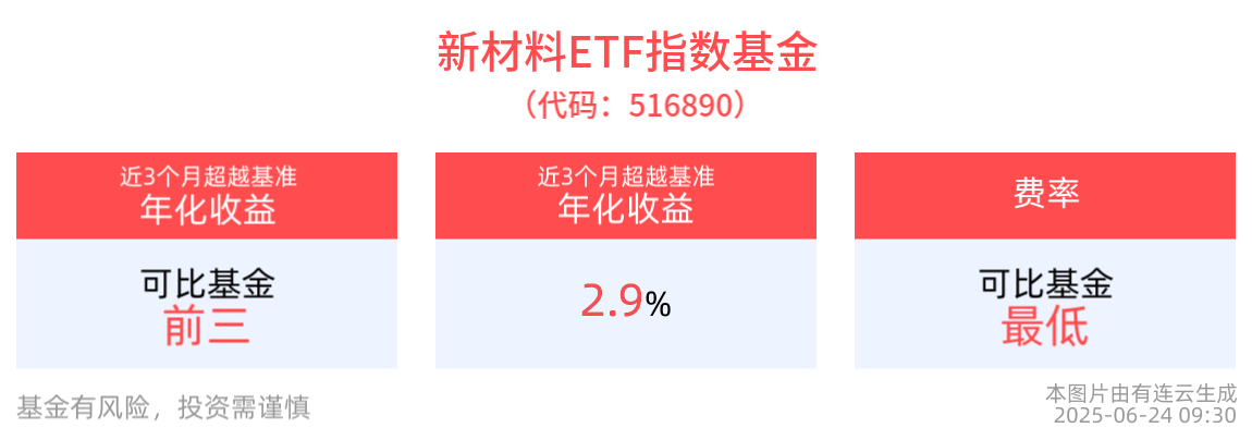 新材料ETF指數基金緊密跟蹤中證新材料主題指數,中證新材料主題指數選取50只業務涉及先進鋼鐵、有色金屬、化工、無機非金屬等基礎材料以及關鍵戰略材料等新材料領域的上市公司證券作為指數樣本,以反映新材料主題上市公司證券的整體表現。