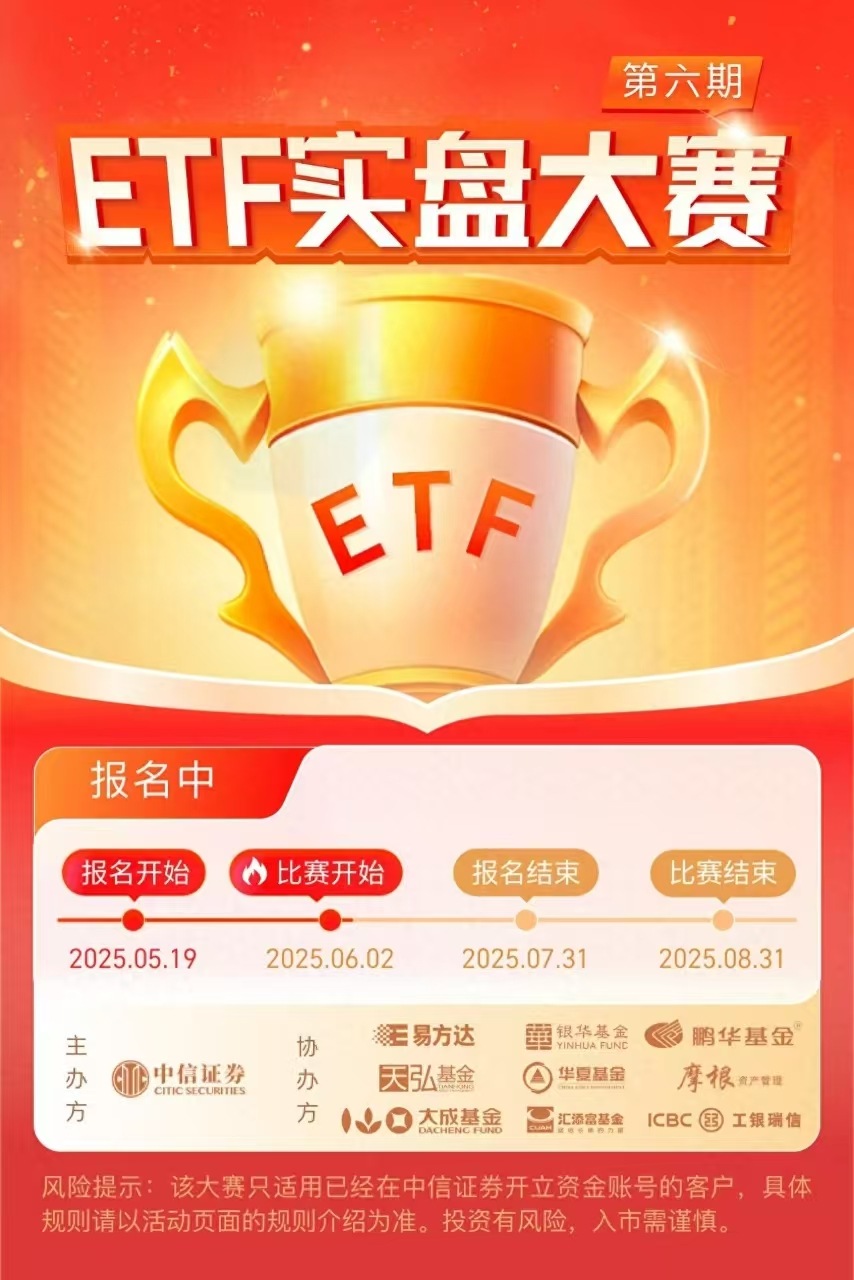 中信證券 ETF 實盤大賽現已開啓報名通道,將於 6 月正式開賽,報名時間持續至 7 月底。