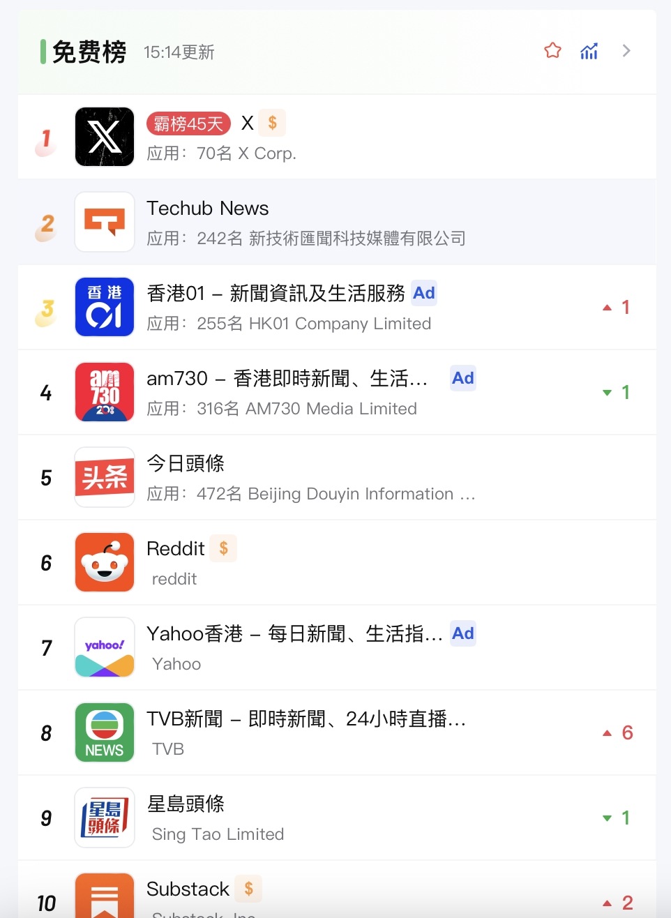 AppStore 與 Similarweb 數據顯示,Techub News 手機端 App 位列港區 AppStore 新聞免費榜第 2 名,應用免費榜第 242 名,近 1 個月訪問量突破 49 萬,全球排名 90,551。