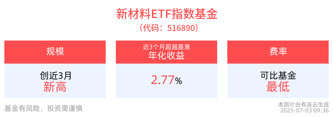 規模方面,新材料ETF指數基金最新規模達2419.03萬元,創近3月新高。