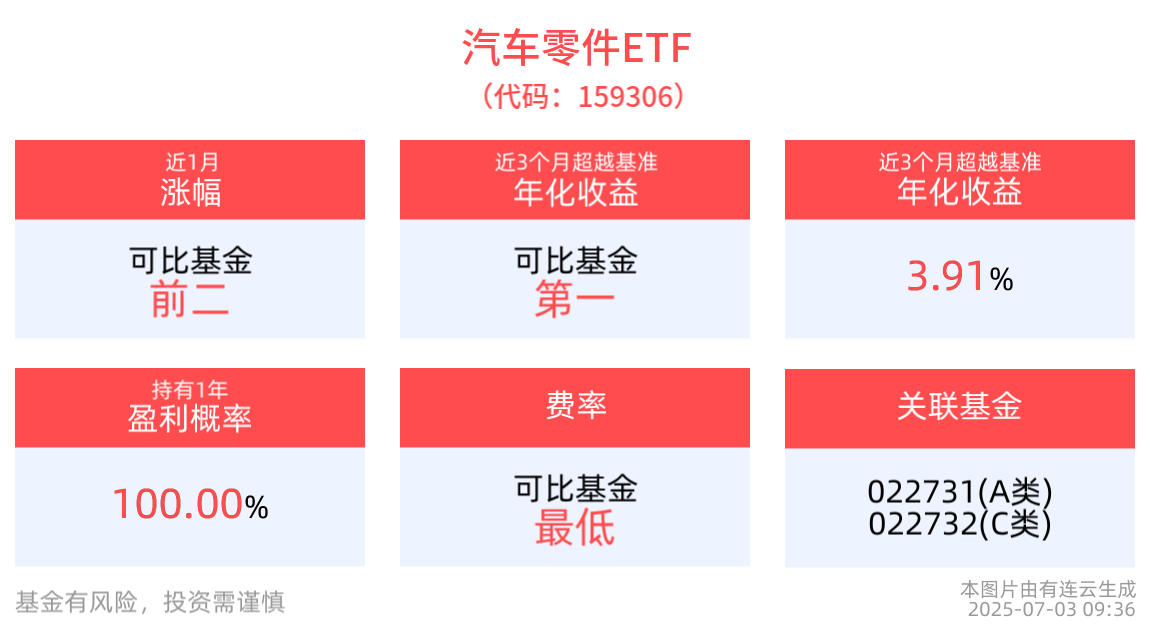 汽車零件ETF(159306),場外聯接(平安中證汽車零部件主題ETF聯接A:022731;平安中證汽車零部件主題ETF聯接C:022732)。