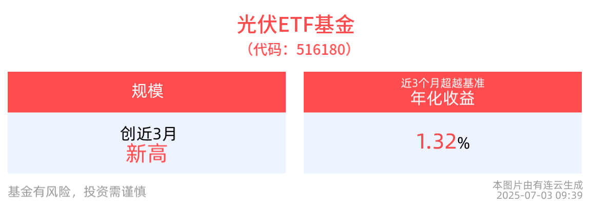 規模方面,光伏ETF基金最新規模達6367.58萬元,創近3月新高。