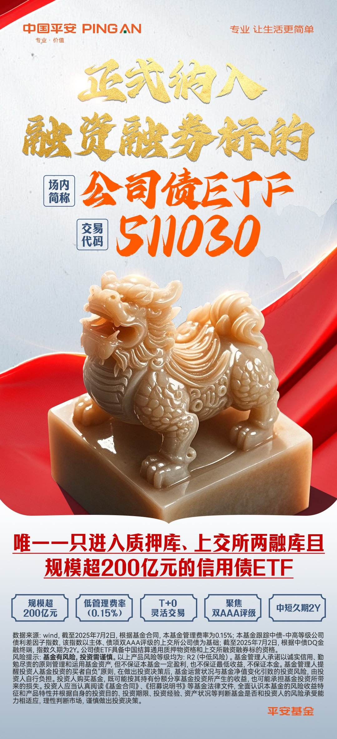 公司債ETF(511030)是全市場唯一一只規模200億以上、兼具中登質押庫資格和上交所融資融券標的的信用債ETF。