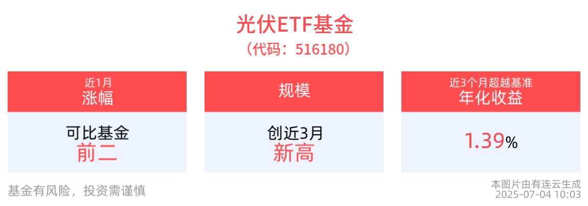 規模方面,光伏ETF基金最新規模達6381.02萬元,創近3月新高。