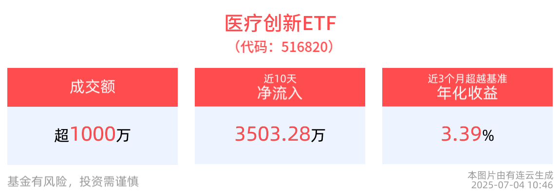 截至2025年7月4日 10:46,中證醫藥及醫療器械創新指數(931484)上漲0.01%,成分股百利天恒(688506)上漲2.48%,康弘藥業(002773)上漲2.47%,海思科(002653)上漲1.93%,恒瑞醫藥(600276)上漲1.87%,邁瑞醫療(300760)上漲1.60%。醫療創新ETF(516820)多空膠著,最新報價0.35元。