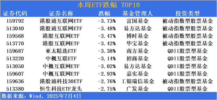 跌幅方面,港股互聯網相關ETF遭遇調整