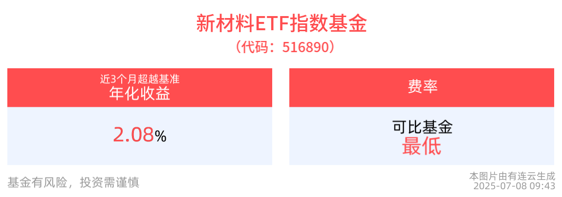 流動性方面,新材料ETF指數基金盤中換手1.06%,成交25.88萬元。拉長時間看,截至7月7日,新材料ETF指數基金近1年日均成交105.37萬元。