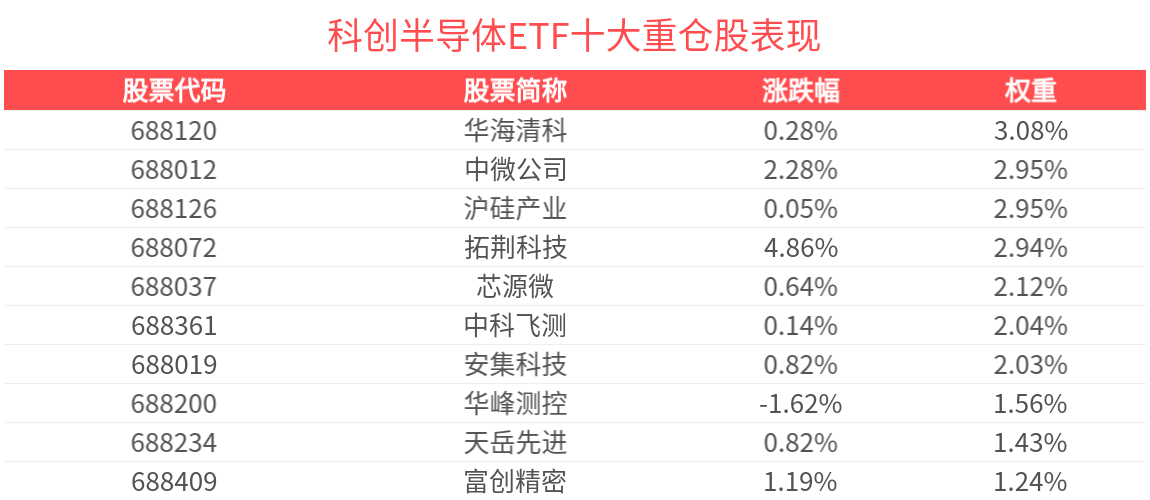 數據顯示,截至2025年6月30日,上證科創板半導體材料設備主題指數(950125)前十大權重股分別為華海清科(688120)、中微公司(688012)、滬矽産業(688126)、拓荊科技(688072)、中科飛測(688361)、安集科技(688019)、芯源微(688037)、華峰測控(688200)、天嶽先進(688234)、盛美上海(688082),前十大權重股合計佔比72.71%。