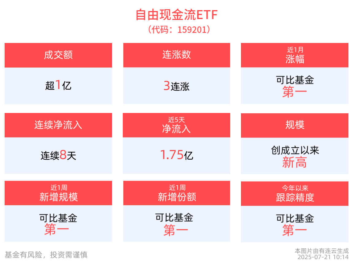 創成立以來新高,同類規模最大的自由現金流ETF(159201)沖擊3連漲