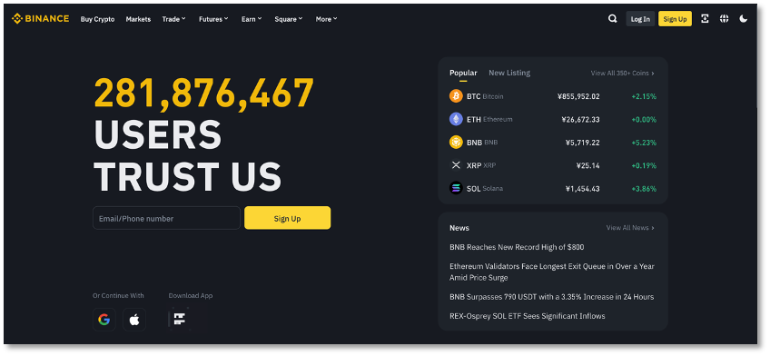 281,876,467,Binance 官网首页上的注册用户数仍在向上跳动,接近 3 亿。今年 1 月初,这个数字是 2.5 亿,也就是说,半年时间,Binance 新增用户数超过 3000 万,接近 2 个东京、4 个香港的人口数规模。