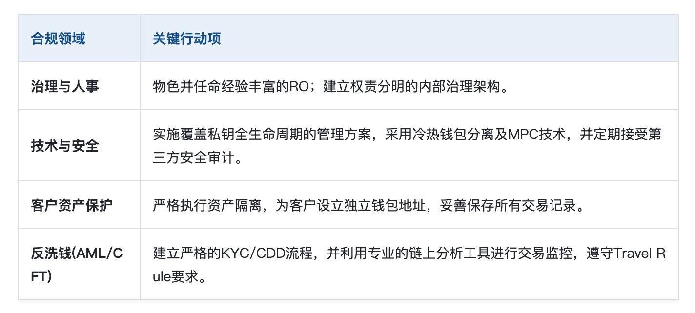 一個健全的内部體係是獲得並維持牌照的基石。企業應重點建設以下領域: