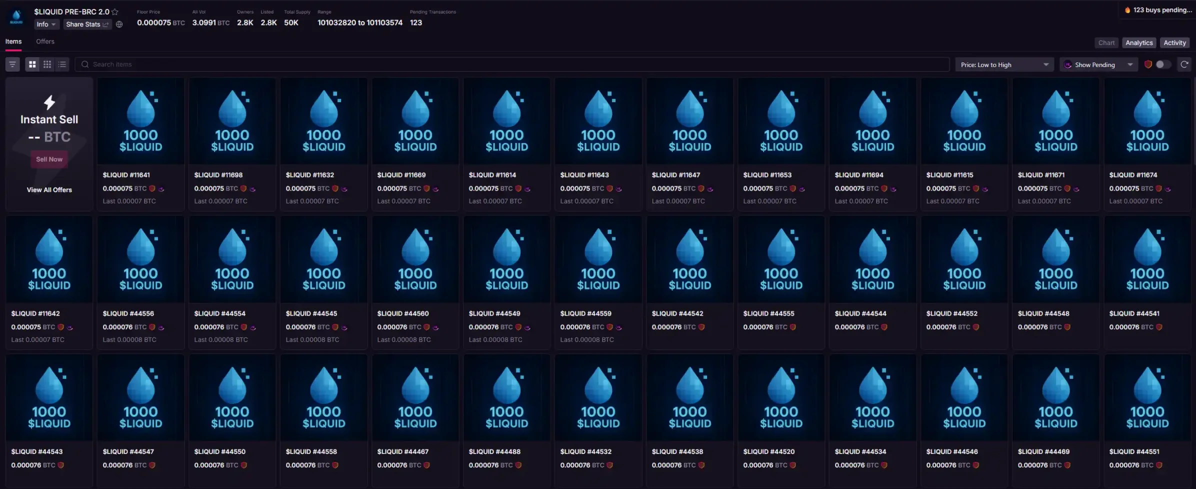 而 BRC 2.0「預發行」代幣,從成交量上看最大的是 $LIQUID,過去一周的成交量達到了約 3.13 比特幣(約 37 萬美元),目前地板價對應市值約為 45 萬美元。