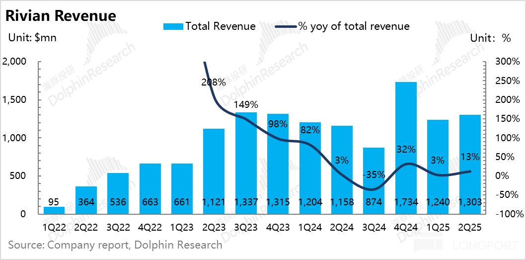 但 Rivian 三季度還要繼續對 Normal 工廠進行停産三周,為 R2 推出做準備,可能無法生産足夠的車輛去滿足窗口期的搶訂,所以海豚君預計今年銷量目標完成壓力會非常巨大,銷量指引進一步下調的可能性大。