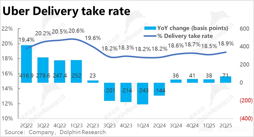 反而是不太被看好的外賣業務,卻表現好於預期。結合 DoorDash 業績也好於預期,更偏可選的外賣需求,並沒有像市場擔憂的,在消費向弱時明顯變差。