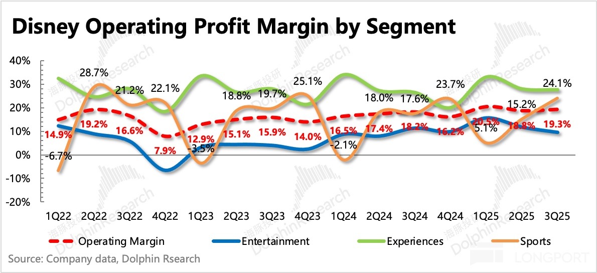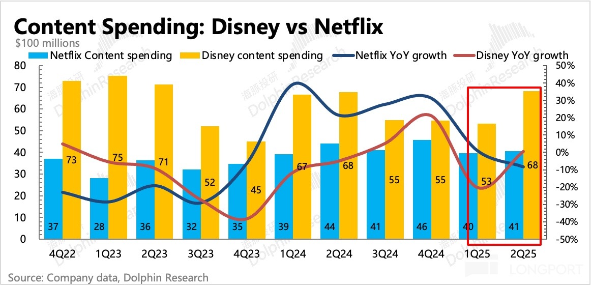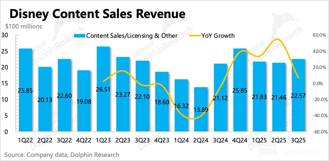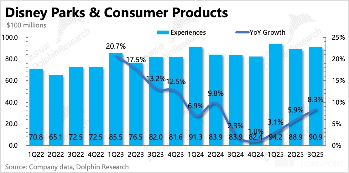 目前而言迪士尼仍然处于内容周期,本季度电影上映的主要是《Elio》、《Thunderbolts*》以及《Lilo & Stitch》,票房都还可以,但去年同期是全球票房第一的《Inside Out 2》,因此增长承压以及变现效率同比下降。