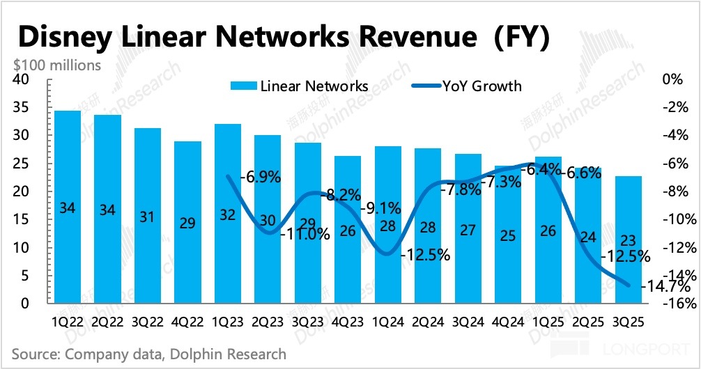 作为跷跷板的两端,流媒体发展火热的同时,传统媒体的老业务自然不能独善其身。随着传统媒体趋势性衰败,流媒体对迪士尼来说不能算是完全意义上的增量了,而有很大一部分是在弥补传统渠道的没落。