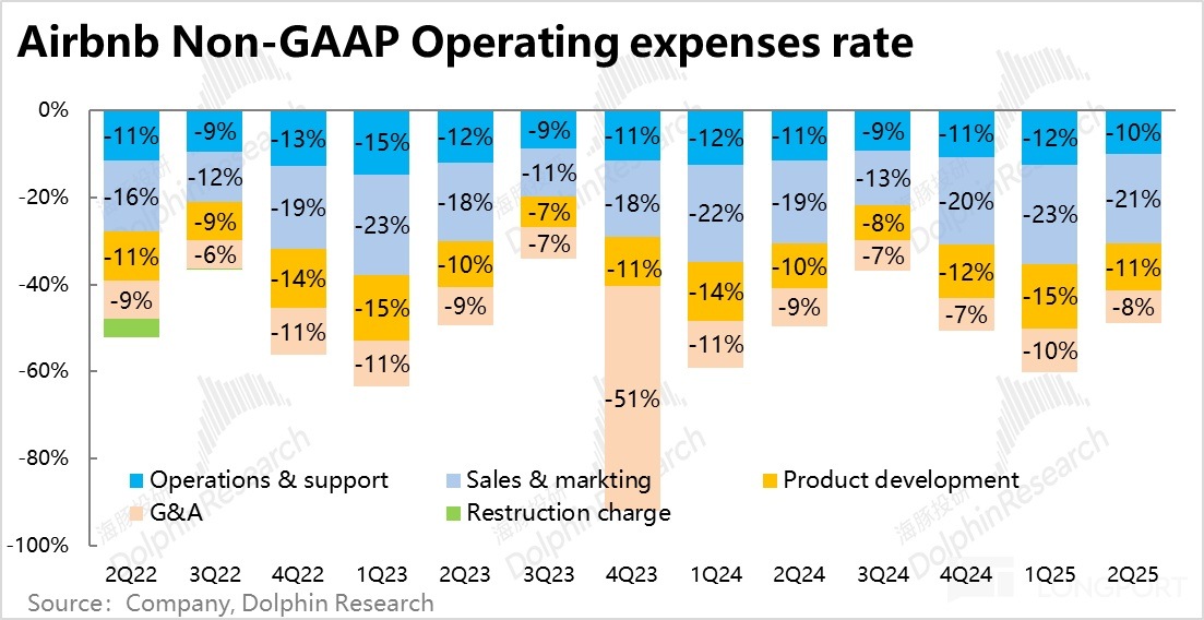 4、投入確實增長,但費率仍在被動收縮:費用上,按加回 SBC 的口徑,本季整體經營費用支出同比增長約 11%,較上季的 8% 有所提速。其中管理費用和運營支持費用都是同比下滑的,但營銷費用和産品研發費同比大增 21% 和 18%。可見確實因新産品推廣明顯增加了費用投入。