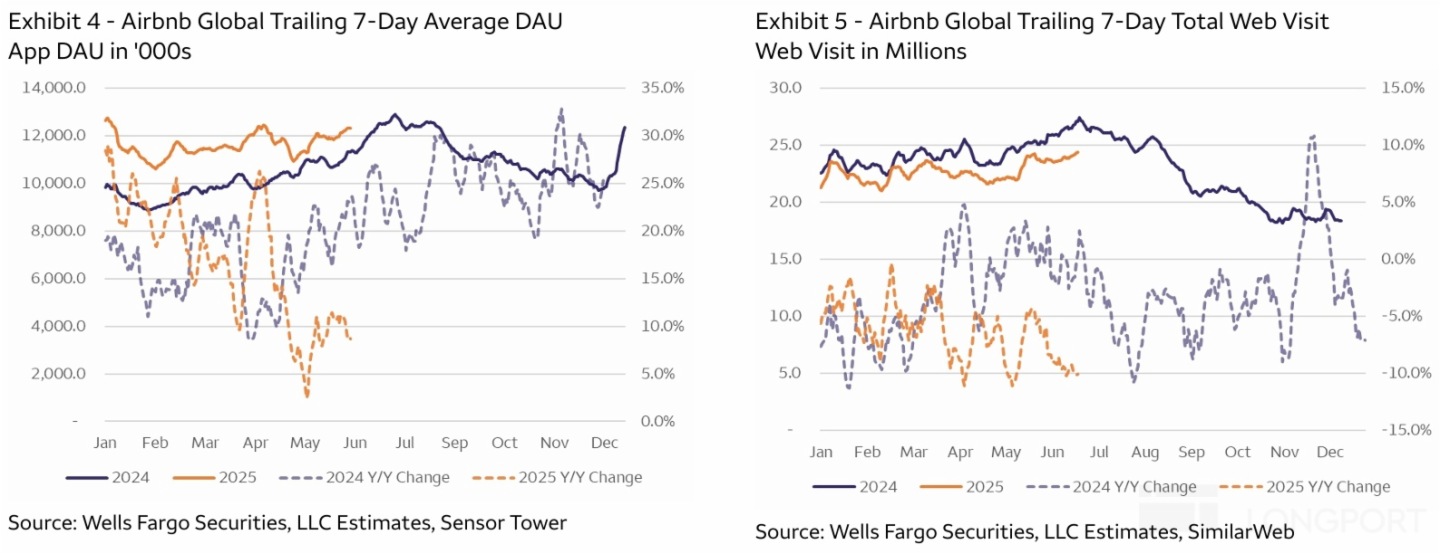 而高頻數據上,無論是 Airbnb 的 App,還是其網頁端的用戶量增長,近幾個季度都呈明顯放緩的走向。公司需求的前景確實不太樂觀。