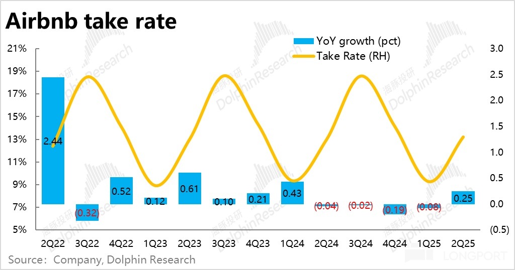 價量因素上,也可見本季總間夜預訂量同比增長僅 7.1%,較上季增速再度放緩 0.9pct,即公司面臨的需求看起來在進一步走弱。相對的,在匯率利好下,平均客單價由上季的同比下跌 0.9% 大幅扭轉到增長 3.2%,從而驅動訂單額名義增速環比提速,且小超預期。